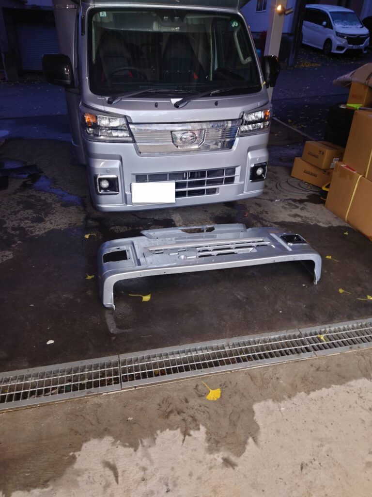 ダイハツ・ハイゼット|フロント事故修理:バンパー交換で迅速に仕事復帰!