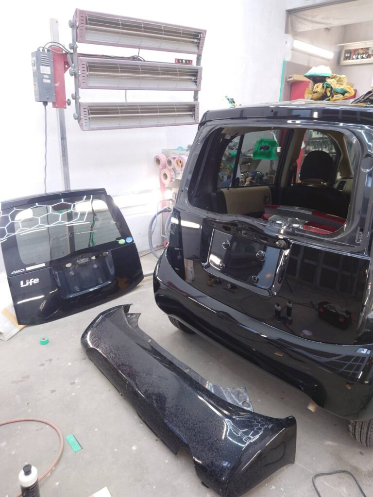 - リアバンパーとバックドアを中古部品で交換し損傷を修復