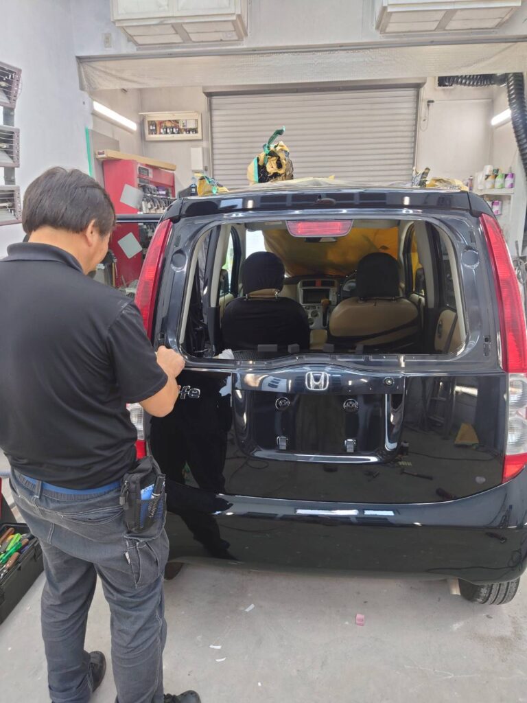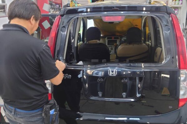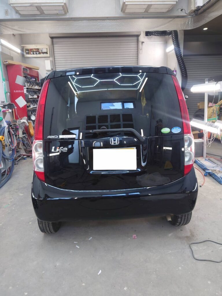 北広島市にお住まいのT様より、ホンダ・ライフのリアバンパーとバックドアの交換をご依頼いただきました。