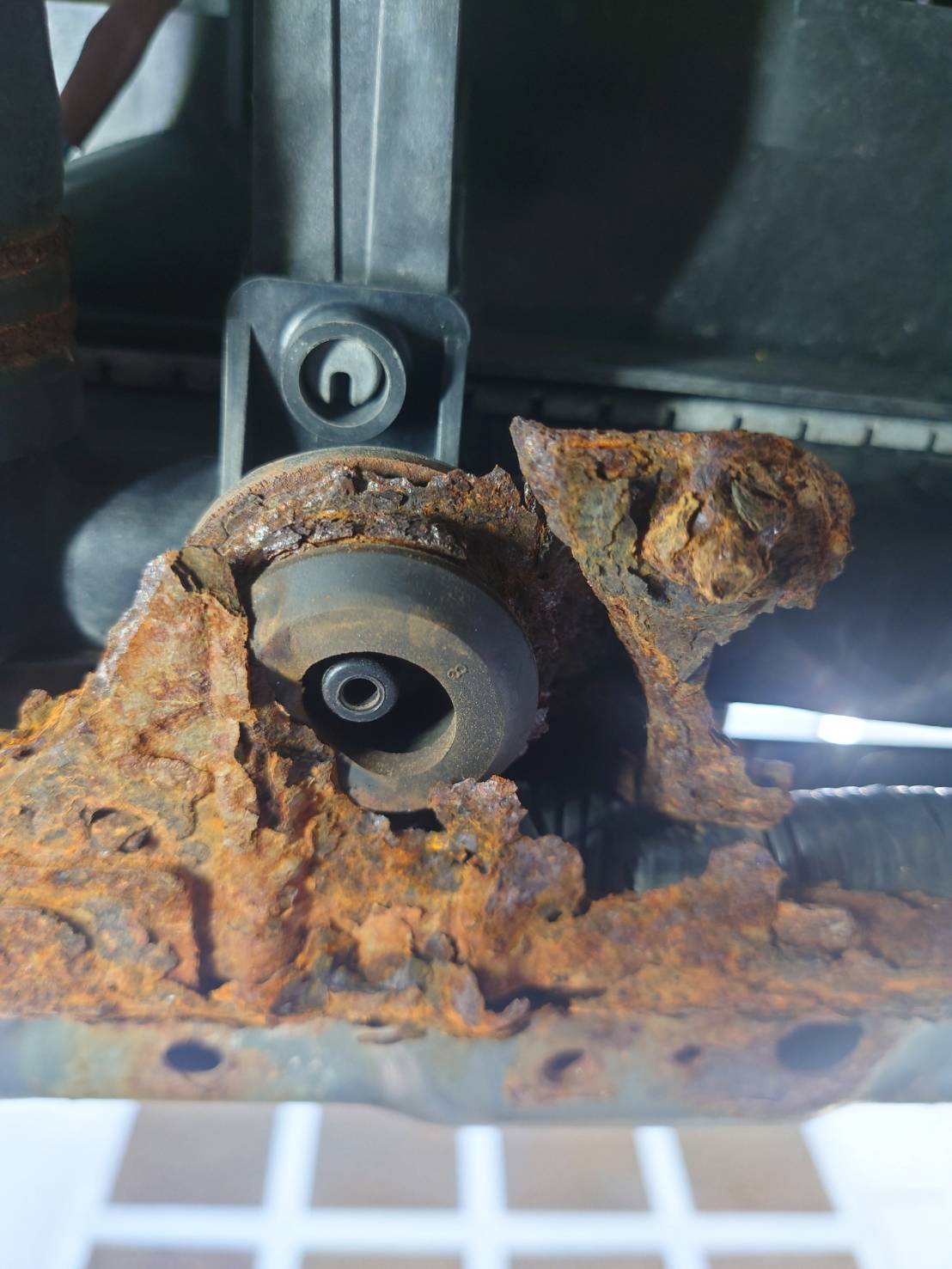 強度が失われるほど深刻に腐食したロアサポート。指で押すと崩れる状態でした。